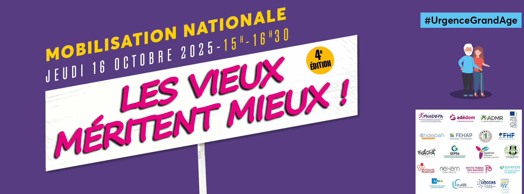 Parce qu’ils ont bâti notre société, nos aînés méritent respect, écoute et meilleures conditions de vie. Face au manque criant de moyens dans les Ehpad et aux difficultés du secteur du grand âge, un collectif de 20 fédérations et organisations concernées par le grand âge, parmi lesquelles la Mutualité Française lancent la 4e édition de la campagne nationale : « Nos vieux méritent mieux ! ».