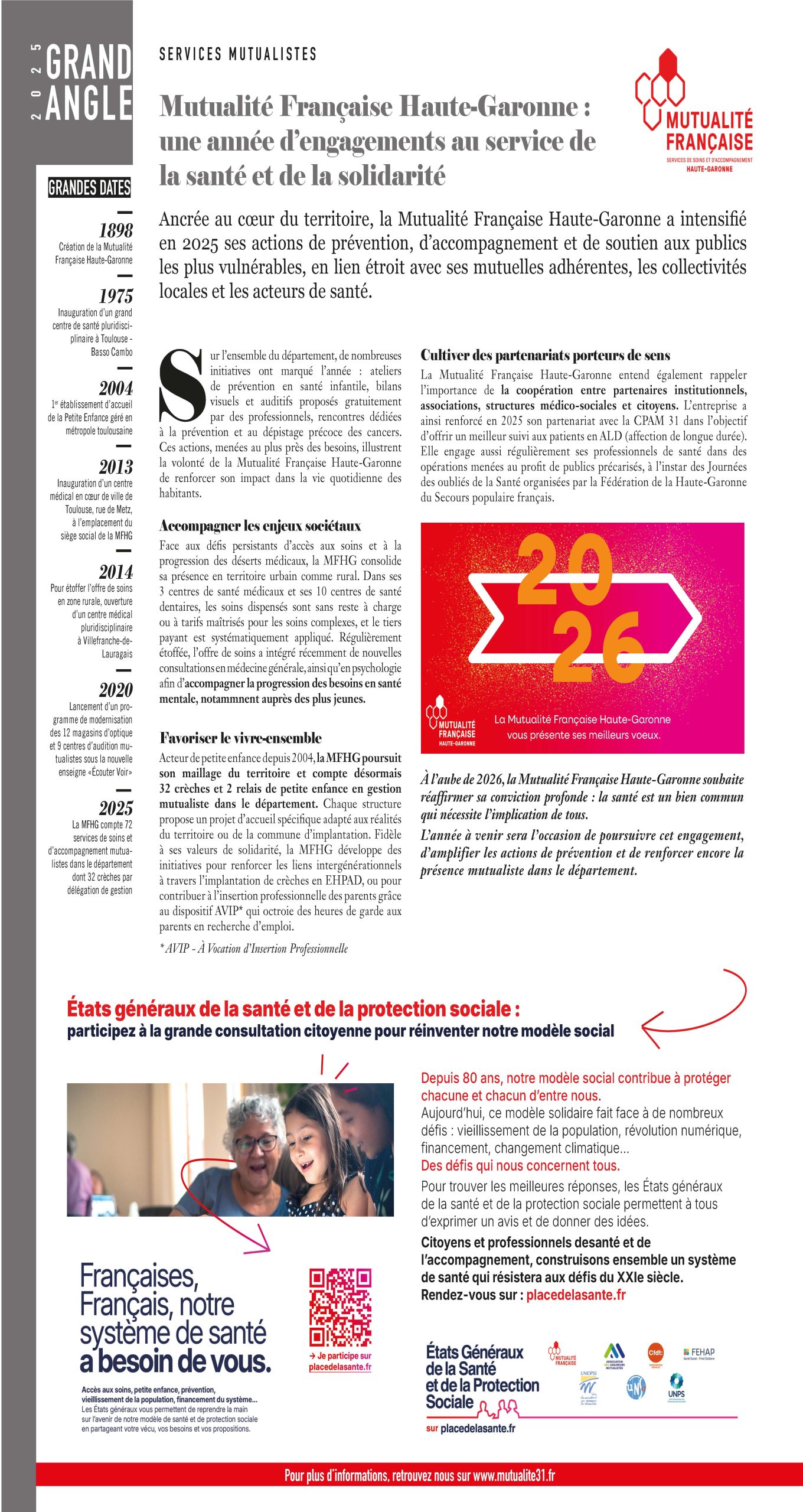 Ancrée au cœur du territoire, la Mutualité Française Haute-Garonne a intensifié en 2025 ses actions de prévention, d’accompagnement et de soutien aux publics les plus vulnérables, en lien étroit avec ses mutuelles adhérentes, les collectivités locales et les acteurs de santé.